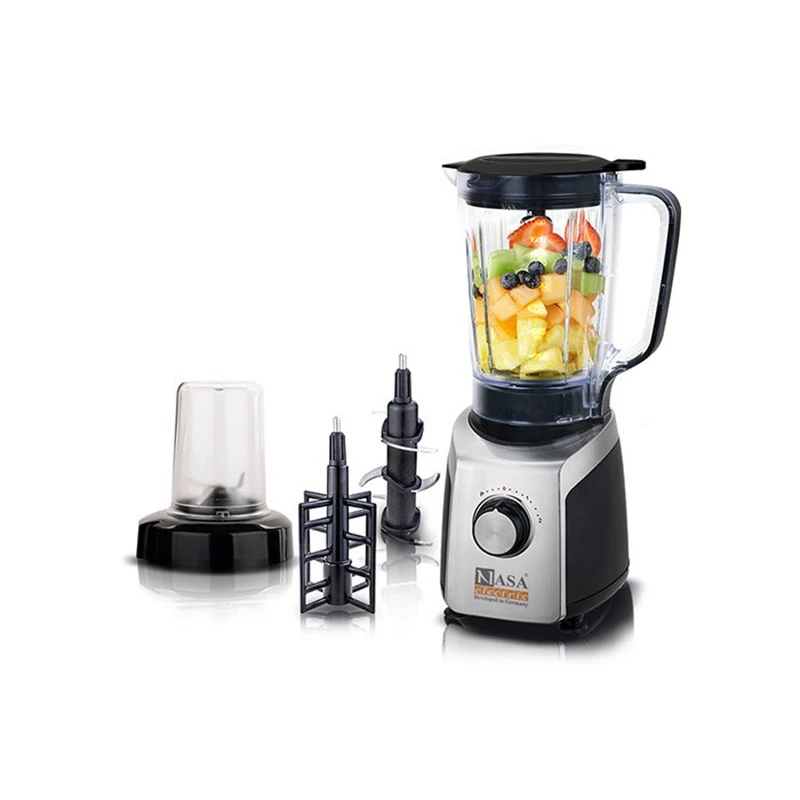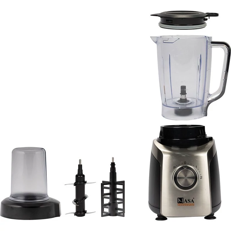 مخلوط کن و آسیاب ناسا الکتریک مدل ns-1963 یکی دیگر از محصولاتی است که گروه لوازم برقی آشپزخانه قرار دارد. این محصول امکان تهیه انواع نوشیدنی و اسموتی و دسر و پودر کردن و خرد کردن دانههای مختلف نظیر قهوه و گردو و پسته و بادام و انواع خشکبار و ... را برای شما فراهم میآورد. موتور قدرتمند تعبیه شده برای این مخلوط کن دارای توان 800 واتی میباشد و از قدرت و سرعت مناسبی بهره میبرد. قابلیت تنظیم سرعت در دو سطح 1 و 2 یا همان کم و زیاد را دارد، هر یک از این سرعتهای انتخابی بر روی عملکرد دستگاه تاثیر گذاشته و سرعت مخلوط کردن و آسیاب کردن مواد را افزایش یا کاهش میدهند. کافی است دکمه ولومی تعبیه شده بر روی بدنه بچرخانید و سرعت مورد نظرتان را انتخاب کنید. همچنین عملکرد پالسی که برای این مخلوط کن در نظر گرفته شده، امکان افزایش و بهرهوری از حداکثر کارآیی دستگاه را فراهم آورده است و برای یک لحظه از حداکثر قدرت موتور بهره میبرد.
