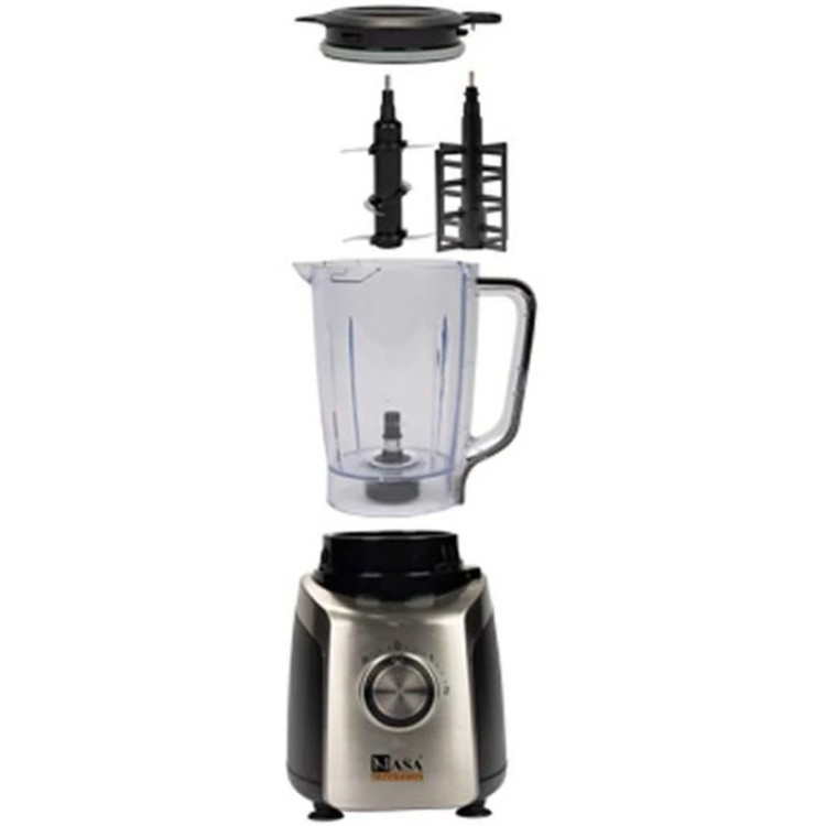 مخلوط کن و آسیاب ناسا الکتریک مدل ns-1963 یکی دیگر از محصولاتی است که گروه لوازم برقی آشپزخانه قرار دارد. این محصول امکان تهیه انواع نوشیدنی و اسموتی و دسر و پودر کردن و خرد کردن دانههای مختلف نظیر قهوه و گردو و پسته و بادام و انواع خشکبار و ... را برای شما فراهم میآورد. موتور قدرتمند تعبیه شده برای این مخلوط کن دارای توان 800 واتی میباشد و از قدرت و سرعت مناسبی بهره میبرد. قابلیت تنظیم سرعت در دو سطح 1 و 2 یا همان کم و زیاد را دارد، هر یک از این سرعتهای انتخابی بر روی عملکرد دستگاه تاثیر گذاشته و سرعت مخلوط کردن و آسیاب کردن مواد را افزایش یا کاهش میدهند. کافی است دکمه ولومی تعبیه شده بر روی بدنه بچرخانید و سرعت مورد نظرتان را انتخاب کنید. همچنین عملکرد پالسی که برای این مخلوط کن در نظر گرفته شده، امکان افزایش و بهرهوری از حداکثر کارآیی دستگاه را فراهم آورده است و برای یک لحظه از حداکثر قدرت موتور بهره میبرد.