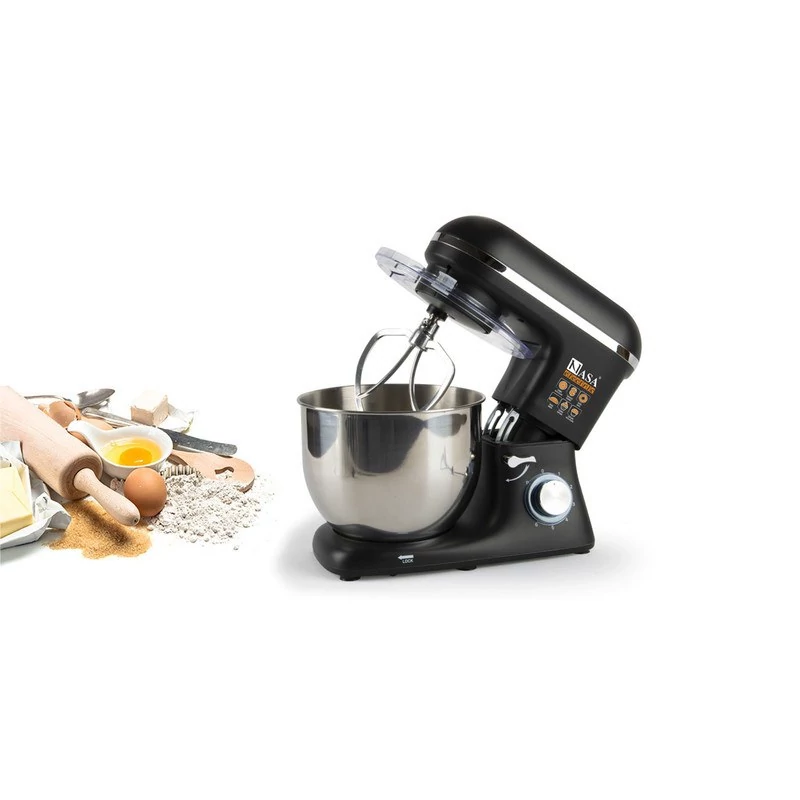 همزن کاسه دار ناسا الکتریک NS-976 یکی دیگر از همزنهای حرفهای و کاربردی ناسا الکتریک میباشد که از کارایی و امکانات بلایی برخوردار است. همزن ناسا الکتریک به دلیل دو مشخصه مهم یعنی موتور قدرتمند و ظرفیت بالای کاسه، تنها برای مصارف خانگی به کار نمیرود، بلکه مصارف حرفه ای مانند قنادیها و شیرینی پزیها نیز میتواند توانمندی خاصی از خود نشان دهد.